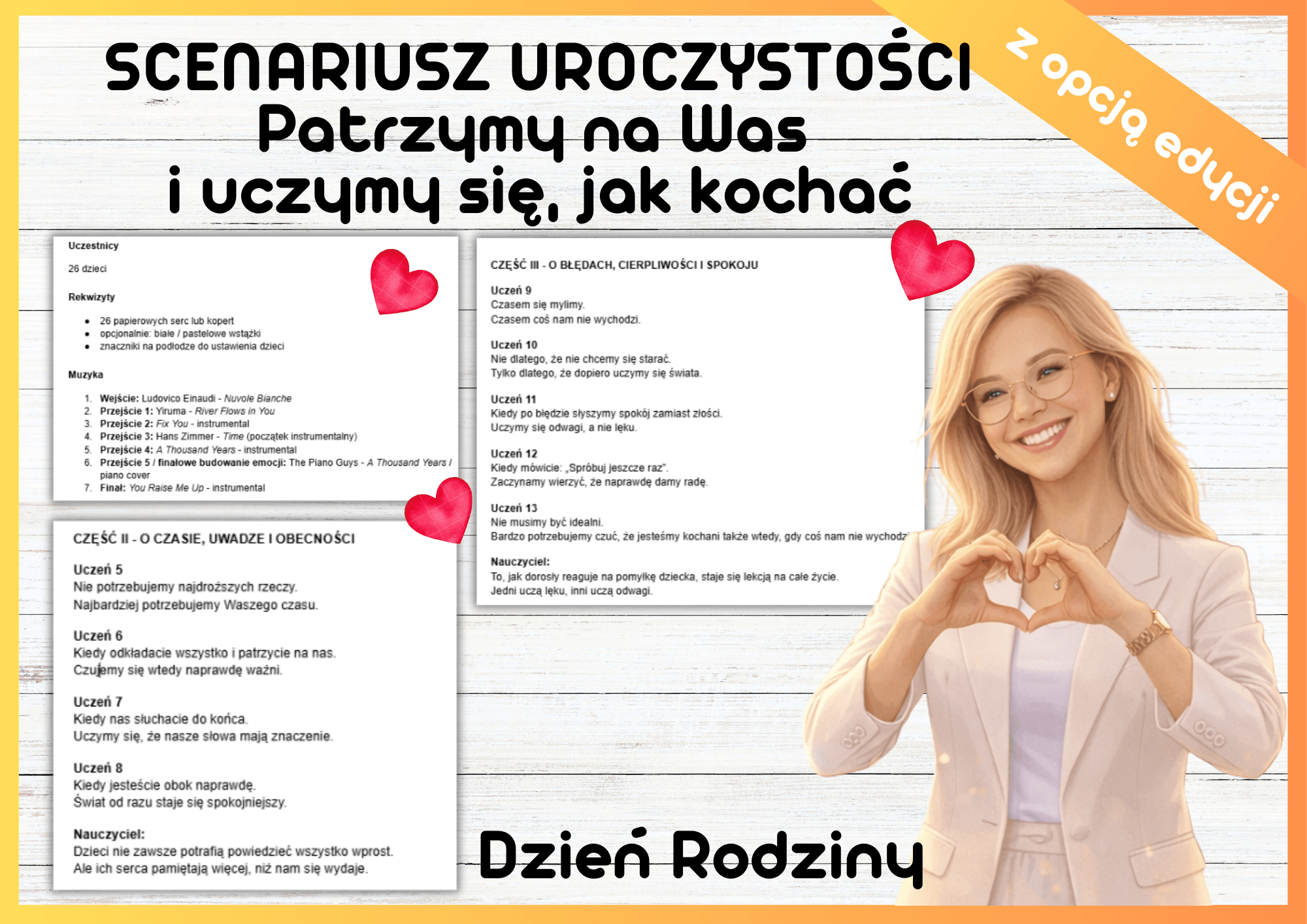 Ten scenariusz został przygotowany właśnie po to, aby stworzyć piękne, emocjonalne i mądre przedstawienie dla rodziców, które zostanie w pamięci na długo. 💛