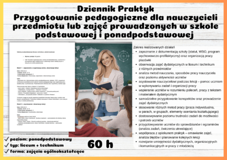 Ten materiał pomaga uporządkować cały proces i przygotować spójny, formalny dziennik praktyk.
